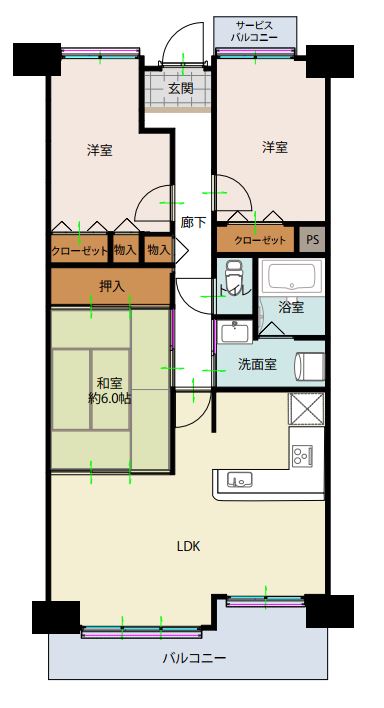 ファミリータイプにぴったりの3LDK!