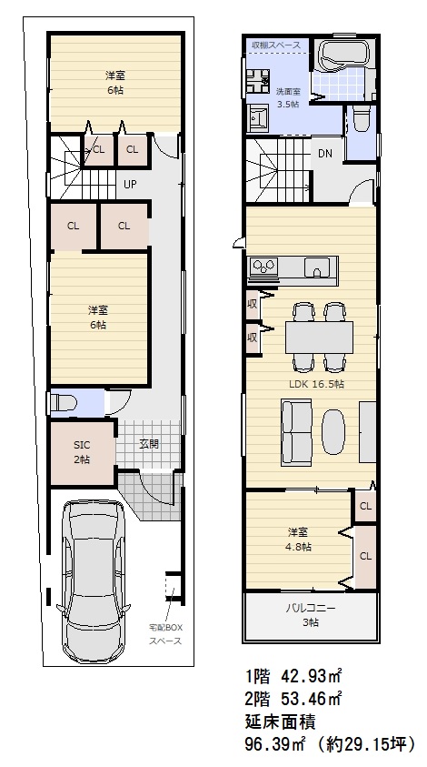 2階建 延床面積 95.77㎡(約29.00坪)まで